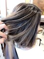 ミディアムヘアにオリジナルバレイャージュハイライトを入れています。しっかり目立たせたホワイトグレイのおしゃれハイライトです。担当川野直人インスタnaoto.k.fuk