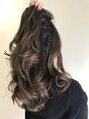 ブリーチを使わずバレイヤージュハイライト・グラデーションカラーでベースを作り、イルミナカラーオーシャンで外国人風にカラー!センターパートで小顔になるように重めスタイルで似合わせカット!オイルトリートメントでセミウェットに簡単スタイリング☆