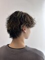 波巻きとツイストスパイラルをミックスした動きのあるメンズパーマ。立体感を引き立てるハイライトで、無造作でもしっかりキマるデザインスタイルです!