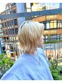 しっかりブリーチでつくる透明感たっぷりのハイトーンブロンド♪ レイヤーを入れて軽さと動きを出し、ラフに決まる抜け感スタイルに仕上げました。