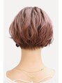 レイヤーを入れ、乾かすだけでまとまりやすいショートボブスタイル。ブラントカットだと重すぎるので毛先は先細りにスライドカットでやや薄く。前髪は薄すぎず厚すぎず適度な量感に。カラーはブリーチ後に12レベルのピンクモーブとアッシュを混ぜて塗布。