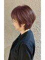 頭の形をきれいに見せる、ショートスタイル。日本人特有の骨格をカットでカバーしながら、艶感のあるピンク系のヘアカラーで白髪をぼかします。色彩が豊富なヘアカラー剤を使用しているので、お好みのカラーにマッチします。
