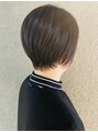 襟足をギリギリまで切ったコンパクトな前下がりショート。顔まわりのタイトさが後頭部の丸みと共に、メリハリを生み出します。襟足にクセがない方は挑戦しやすいです。
