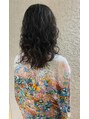ミディアムの長さでのパーマスタイル。中間から毛先にかけてしっかりウェーブが出るように巻き、仕上げはムースを揉み込みます。