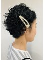 ショートヘアに強めのスパイラルパーマをかけました。強めのパーマは、お手入れ簡単、アレンジもたくさん出来て多様性があります。