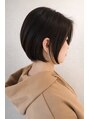 襟足はタイトに収めることで首元がすっきり見え、女性らしい上品な印象に。顔まわりは長さを残しているので、小顔効果もあり柔らかい雰囲気を演出します。カラーはナチュラルなブラウン系で、光に当たるとほんのりツヤと立体感が出る仕上がり。