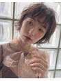 ショートボブスタイルをランダムに巻いて、前髪も26ミリのコテで内巻き外巻きを施して柔らかめのスタイリングに。