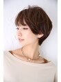 耳かけスタイルです!小顔に見えるように前髪の長さを整えています。パーマでふんわりボリュームを出すとお顔も小さく見えてくれます!ベージュカラー で上品なブラウンが人気!8から10Lvの明るさで程よい明るさがショートに合わせやすいです。