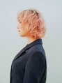 数回ブリーチした髪にほんのり強すぎないピンクが香る色味が絶妙!!全体的にレイヤーが入ったウルフスタイルなので動きがでてスタイリングの幅が広がり、毎日楽しめるスタイルになります。今回は強めのカールで雰囲気を出し、少しクールな印象になります。