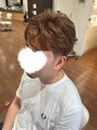 アウトラインは刈り上げてるのでスッキリ感も出て毛流れを出したセットがしやすいフェザーパーマスタイル。前髪は上げたりもできますし下ろすのも可能です!