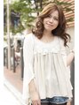 もともとストンとした髪の毛を、彼女の柔らかな雰囲気を引き出したかったので、ウェイトを高くし動きを出しました。顔周りにも立体感を出すためにフェイスラインに短いラインを作り、柔らかく、そしてあったかい雰囲気に。