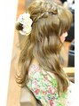 5分で簡単アレンジスタイル☆このスタイル、ストレートアイロンとゴムを2本使っているだけなんです!!全体のウェーブはストレートアイロンで、そしてハチ上のみに細かめの編みこみをして軽く引き出すだけで出来上がり☆