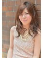 ベースを鎖骨下に設定することで納まりを良くし、コテでも巻きやすいように顔周りをメインにレイターを入れたスタイル☆アッシュ系のくすみが出るカラーにラベンダー系の色を少し足すだけで艶感も同時にプラス。バングも目のラインに沿うようにすると眼力もUP