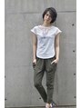 トップのモヒカンラインにニュアンス程度に立ち上がりのつくパーマをあて、バックからサイドバックはボリュームを絞るようにカット。カジュアルな着こなしやドレスアップにも対応できるレングスです。カラーで明るさを出せばフェミニンなスタイルにも最適◎