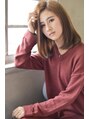 ハイライトをなじませることでストレートボブに立体感の艶感を、イノセントカラーで華やかなスタイルに。重めでも表面にスライドカットでラフな動きが出るようにしています