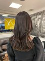 くびれ透明感のマロンベージュカラーを入れてベースが暗くても透け感のあるデザインカラー♪人気のイヤリングカラー!髪質改善サロンならではのトリートメントでカラーしても艶髪に♪