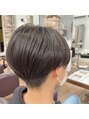 襟足は6ミリで刈り上げさせていただいております。女性らしさを残すために、後ろは少し丸みが出るようにカットさせていただいております。