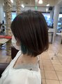 カットはワンレングスボブで重くならないよう毛先の量感調整と質感調整を入れお手入れしやすいように☆カラーはブラウンベースにインナー部分にエメラルドグリーンを入れています☆