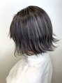 外ハネにしやすい肩上のボブにグレーのハイライトヘアカラー カラー ブリーチ ブリーチなし グレージュ ハイトーン イヤリングカラー ハイトーンカラーミルクティーカラー インナーカラー デザインカラー