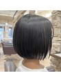 切りっぱなし顎ラインボブスタイルです。可愛らしい感じが好きとの事でしたので、少し丸みが出るようにカットさせていただきました。最後は軽くアイロンでスタイリングをしてオイルをつけて仕上げております。