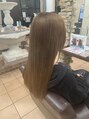 ナチュラルなストレートスタイルです、カットは切りっぱなし風の重めスタイルでアイロンでストレート仕上げカラーはブリーチ一回後、ベージュを入れています。