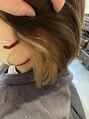 赤みを抑えるオリーブベースのブラウンカラーと前回のインナー履歴に少しくすんだベージュをオン!アイロン仕上げの集中ケアトリートメントでうるツヤヘアに♪