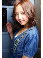 甘さの中にラフで上品なランダムなふわふわカールが大人ガーリーです。リバースに流れるカールがスウィートで大人っぽさも感じる雰囲気が今季のオススメです!!厚めバングが小顔にします☆ひし形シルエット