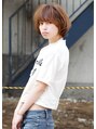シンプルな大人かわいいひし形ボブスタイルです!今年はカジュアルフェミニンがポイント☆流しバングがかわいさと小顔効果アップさせます♪ 前下がり 指名無料 ルミエールカラー 美髪 耳かけ フレンチ ヌーディーカラー ウェービー マッシュ