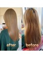 トレンドのミルクティーベージュ ケアブリーチダブルカラーで綺麗な髪質を実現しております。透明感あるミルクティーベージュと手触り抜群な髪質のこだわりあるデザインカラーです
