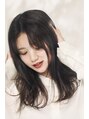 暗めカラーとゆるっとしたラフカールで可愛らしさと大人っぽさの間を行くセミロング。センターパートで知的な印象を引き出します。顔立ちや骨格に応じて顔周りの切り方や分け方で雰囲気を演出すると良いですね。伸ばし中の前髪のアイデアとしてオススメです!