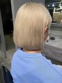 ホワイトベージュのハイトーンに組み合わせた「ボブ」スタイル◎ ダメージ補修とまとまりを出してくれる「酸熱トリートメント」を一緒に施術することによってより艶感のあるヘアスタイルに◎