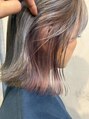 全体を2回ブリーチした髪です。インナーのみピンク、全体はシルバーラベンダーでカラーしています。ストレートアイロンで軽く外に跳ねさせるようにスタイリングしてあります。