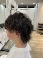パーマで無造作に動きを加えたウルフスタイルになります♪襟足までしっかりと動きをつけたスタイルになるので毎日のスタイリングが楽しくなると思います!いつもと違ったスタイルにしたい方などにオススメの髪型です!