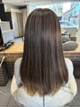 ベースを暗めにし、ブリーチでハイライトを入れてベージュにオンカラーしています。