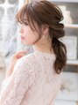 【スタイルは★ブックマーク★が便利】結婚式や二次会のパーティシーンにオススメの大人かわいい抜け感フェミニンヘアアレンジ。おくれ毛で輪郭カバーして小顔に。くるりんぱでルーズに仕上げてやわらかな印象に。(メイク担当:上尾店 中田)