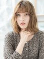 【スタイルは★ブックマーク★が便利】ラブカジュアルな印象の外ハネミディは外国人風のグラデーションカラーでグラマラスな髪型に。前下がりで輪郭カバーして小顔に。斜めバングや厚めバングで目力UP。耳かけも大人かわいい。(メイク担当:川口店 成田)