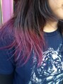 ミクスチャーROCKが好きなモデルさんにピッタリな今回のヘアスタイルブリーチを二回してシルバーブルーとビビットバイオレットのカラーリングをオン!