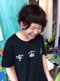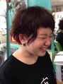 耳にかけるとチラリと見えるピンクバイオレットが可愛いほんの少しアシンメトリーにカットしてあり、パーマでふんわりとした雰囲気に。ポイントブリーチカラーとカットパーマで12100円です。