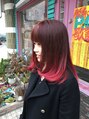 ピンクブラウンとチェリーレッドで作るグラデーションスタイル毛先は重めにワンカールで巻いてあります