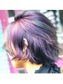 ブリーチ2回でつくるグレージュとインナーのブルーバイオレットとてもキレイなカラーで色落ちも楽しめます。