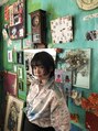 ブリーチで透明感を出したダークグレーのショートウルフバングはスッキリとした印象で束感を出しています。