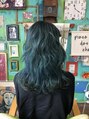 深みのあるマーメイドグリーンの波巻きウェーブヘアアッシュをたっぷり混ぜてあるので透明感も出ています。