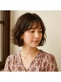 柔らかなウェーブのボブスタイルで、大人の可愛らしさと上品さを両立。顔まわりの動きが優しく表情を引き立て、女性らしい雰囲気を演出します。