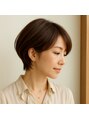 前下がりショートボブのミセススタイル。襟足をすっきりさせ、顔まわりに動きを出して軽やかさを演出。髪質改善超高濃度水素トリートメントでツヤとまとまりを実現。