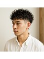 強めのツイストスパイラルで動きを出したツーブロックショート。タイトなサイドと立体的なトップのカールが、清潔感と大人の色気を演出するスタイル。20代 30代 40代 50代 60代 髪質改善 メンズパーマ メンズカラー メンズカット メンズショート
