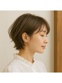 ショートグラボブ×軽やかな毛先の動きが特徴。丸みのあるシルエットに外ハネをミックスし、立体感と抜け感を演出。自然なツヤと柔らかさが際立つ上品ショート。