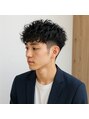 ツーブロックに強めのツイストスパイラルをかけたモードショート。立体感のある束感と無造作な動きで、清潔感の中にストリートなかっこよさをプラス。