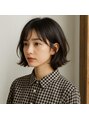 毛先を軽く内に収めた切りっぱなしボブ。 シンプルなラインが顔まわりをすっきり見せ、上品で抜け感のある印象に。 自然光で艶を引き立てたナチュラルボブスタイル。