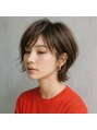襟足はタイトにおさえ、トップにだけ軽い動きをつけた丸みショート。顔まわりのレイヤーがやわらかく表情を引き立て、自然な抜け感のある仕上がり。