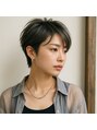 前髪を長めに流した洗練ショート。 サイドと襟足をタイトに締め、トップに浮遊感のある動きをプラス。 透明感のあるカラーとシアーな装いが相性抜群のモードショート。